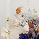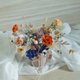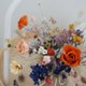 永生玫瑰、罌粟花、小雛菊、大麗菊、法國白梅、胡椒果…等 15 種以上花材搭配設計。