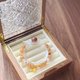 奶呼呼的橙月光蘊含著包容萬物的溫柔光暈,實在是很討人喜愛,搭配獨特、別緻的白水晶翅膀、含蓄又靈動的藍月光與秋日色調的阿拉善瑪瑙,其風格在休閒和氣質中切換,不會佷局限,適合在基礎款穿搭上增添造型感;手鍊下擺部分為荷葉與蓮蓬,環保銅厚鍍14K真金材質,復古的磨砂啞光充滿中式古典氛圍感,是一眼萬年的溫柔♡