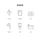 水龍頭、鏡子(或玻璃層板)、乾濕隔離門、磁磚