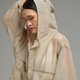 - Crafted from breathable, mid-weight fabric, it’s designed for adaptability — shielding from light rain, soft wind, or simply adding a layer of understated style. Generous pockets add practicality without compromising the jacket’s minimal frame, and the hood is shaped to fall naturally when not in use, preserving the piece’s fluid drape.