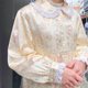 Vintage 鵝黃色壓褶蕾絲滾邊長袖洋裝 睡衣 復古著