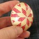 - Easter egg made of handmade wax technique: printing tools (pysachok-kistka) and wax on real chicken egg (egg in the middle of a blank), aniline dyes painted. All eggs are hand blown, washed and processed thermally. To make colors last longer pysanky are covered with several layers of UV protection.
