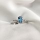 0.5ct瑞士藍托帕石,水滴型明亮切工完美因此呈現天然透亮,水滴型托帕石兩邊鑲嵌馬眼型方晶鋯石如天使般的翅膀,設計有層次變化,凸顯出您優雅且甜美的氣質,適合任何場合配戴。