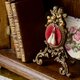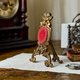 華麗而充滿浪漫氣息的古董懷錶架,出自19世紀末至20世紀初的法國工藝。頂端一對相依的天使雕飾象徵愛與永恆,底座以繁複的洛可可式卷草紋托起整體結構,散發雍容典雅的氛圍。中央紅色絨布映襯出溫潤質感,上方設有小巧金屬勾,可懸掛懷錶,亦適合展示首飾。材質為銅與絲絨結合,既具收藏價值,也是書桌或陳設空間中最引人注目的焦點。這不僅是一件功能性物品,更是一段浪漫歷史的縮影,融合實用與藝術於一體。