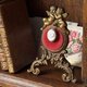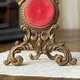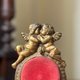 - 華麗而充滿浪漫氣息的古董懷錶架,出自19世紀末至20世紀初的法國工藝。頂端一對相依的天使雕飾象徵愛與永恆,底座以繁複的洛可可式卷草紋托起整體結構,散發雍容典雅的氛圍。中央紅色絨布映襯出溫潤質感,上方設有小巧金屬勾,可懸掛懷錶,亦適合展示首飾