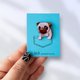 ちょっと恐縮している様な面持ちのパグ君をシュールでユーモラスな表情を描いてブローチにしました。