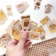 材質:貼紙為銅板貼紙上亮膜,夾鏈袋為pvc,可收納小物重複使用