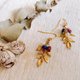 金色落葉-黃銅葉寶石耳環