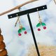 紅色小櫻桃水晶樹脂垂鍊耳環耳勾