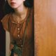 古著日本橘棕底鏤空雕花單色洋裝