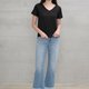 簡約自在的V領上衣,異材質拼接設計,形成反差趣味,搭配個性下身,率性有型。