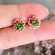 - 綠色鉻透輝石寶石耳環,圓形,4毫米。