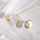 コイン型の淡水パールの下部斜めに金箔をあしらい、‐half moon‐ を再現したネックレス・ペンダントです。