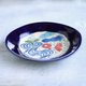 これは丸皿の底の平面に楽し気に泳ぐ2匹の金魚を描いたものです。