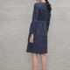 簡約雅致的開襟洋裝,在特殊織紋的棉質面料詮釋下,顯得獨具韻味。前方隱藏門襟只保留第一顆釦外露,使衣身更為乾淨簡潔。可依喜好做為罩衫或是當做洋裝穿著,以腰帶作為轉換穿搭的小巧思,不同的衣著姿態,一樣的優雅宜人。