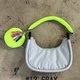 这款圆形肩包以**彩色手柄和小包**为亮点。