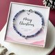 - 以沈穩柔和的 藍紋石(Sodalite) 為主石,搭配一顆精緻的 藍色鋯石吊墜 作為亮點,展現冬日藍調的透明感,是一條既百搭又帶有個性魅力的手鏈。 低飽和霧藍色與銀色金屬呈現清新質感,無論聖誕禮物或日常配戴都非常適合。