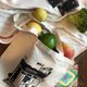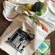 帆布包包上面絹印的圖案是可愛又厭世的咖啡廳店員比肩,和天天都會來買咖啡的胖橘貓。