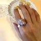 - 名稱:晞玥 巴洛克雙珍珠戒指 (Free Size) 設計:雙珠設計,紫色幻彩與粉光的碰撞 材質:天然淡水珍珠 尺寸:香港号13,可調校至11-18号 祼珠:約22x16mm + 7mm 細節:S925純銀鍍金