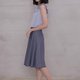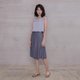 經典A字及膝波浪裙,布料帶有細膩的小緹花紋路,裙襬虛邊水洗。走動流露婉約氣質,隱約散出別緻感。