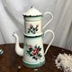 This rare antique French enamel coffee pot features a classic double-layer design, embodying rustic French aesthetics, the body is creamy white with a mint green trim, adorned with hand-painted vintage rose bouquets, showcasing a deeply romantic country style, the worn edges further enhance its historical charm, please note that the inner layer is severely rusted and is no longer suitable for brewing or serving beverages, it can only be displayed and collected purely as a decorative home art piece, injecting a unique French elegance into any space.