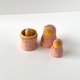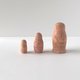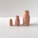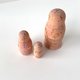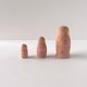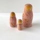 - A set of three pink matryoshka dolls. They are dressed in outfits reminiscent of wrapping paper adorned with wildflowers. These dolls are a wonderful choice for presents and gifts, or whenever you wish to add a touch of warmth and vibrancy to your living space.