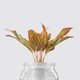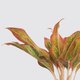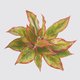 屬於粗肋草一種,葉柄粉紅色,葉身深綠色,邊緣夾雜細碎黃斑。