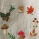 以「秋日森林」為主題,將楓葉、橡實、各式菇菇與植物,以細緻刺繡呈現。