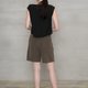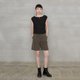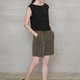 中性的剪裁搭配仿麂皮戎的面料,質地輕不厚重且手感低調滑順,容易搭配各式簡單上衣或背心,適合喜歡效率不喜歡為搭配煩惱的妳,不論正式場合或休閒場合都適宜的及膝短褲。