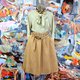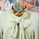 **草綠色圓點絲巾蝴蝶結領口寬鬆襯衫 文青風高貴優雅 日本中古古著**