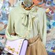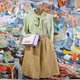 草餅綠色圓點薄襯衫青春可愛,永遠有點昭和年代的可愛感,粉嬾色系搭配紫奶色的Vintage風Versace真皮手袋,絕對是高貴又可愛的感覺!