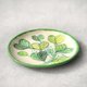 やや目の粗い白土の表面に白化粧泥を施し、その上から新緑を想わせる緑の葉を手描きした、