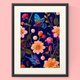 様々なパステルカラーの個性的な形をした花柄のまわりに、綺麗で神秘的な蝶のような鳥が飛び交い、和のテイストやかわいさとシックなかっこよさを兼ね備えたデザインでお洒落に演出させます。