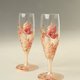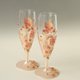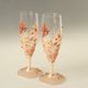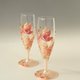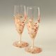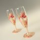 Set of 2 sweet wine glasses, hand-painted. Butterflies and wildflowers design. Rose-gold shiny gloss on the glasses, coral-pink flowers, decoration with crystal rhinestones. One of a kind glasses, READY to SHIP!