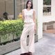 🌸 Wide-Leg Cotton Blend Pants with Lace Detail 🌸