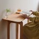 職人の手で何度も繰り返し研磨した後、天然オイルで表面加工を施しています。天板はもちろん裏面、脚部に至るまで、いつまでも触れていたくなるなめらかな質感に仕上げました。使うたび、さらに移動させるときでさえ、やさしい手触りが心を和ませてくれます。またメンテナンスをしながら長く愛用するほど、経年変化による味わい深さが増していきます。
