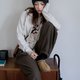 毛呢橄欖棕針織褲|褲子|秋款|Sora-1633