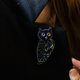 - Owl night bird embroidered brooch. Handmade. Beaded embroidery. Materials: beads, spinel (synthetic), french wire, leather. Perfect as night sky lower gift or ravenclaw dark academia lover. Who loves cosmic jewelry, starry night and constellations.