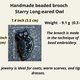 if the brooch gets dust on it, wipe it off with an eyeglass cloth or you can dust it off with a paint brush (or powder brush, works well too) Try not to soak the brooch in water. If it does, leave it to dry on a table for a while. Please do not blow dry with a hair dryer ❤️ The inside of the brooch is dense cardboard and can be ruined with a hair dryer. It's okay if the brooch sits on your dressing table for a couple days. But it is better to store it in the pouch I sent with the brooch. It is advisable not to drop the brooch on the floor. The beads are strong, but they can break. And most importantly: wear the brooch✨ It is made for beauty.