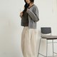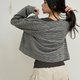 條紋休閒風-短版開襟外套-淺灰色 - 女大衣/外套 - 棉.麻 灰色