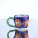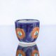 コバルトブルー釉の地にユーモラスなカメリア(椿花)をオレンジ釉で描いたポップ調のマグカップです。