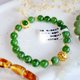 久等了,供奉於祈願觀音殿,菠菜綠碧玉帶有一些天然美人痣(鐵元素黑點),小顆粒老型珠非常可愛,不挑膚色也顯氣質,是很適合入門碧玉的選擇。