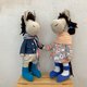 The horse is dressed in a floral printed dress, a white tights and a scarf. Due to feature of making you can not remove the clothes.