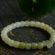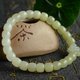 精選黃口漸變和田玉老型珠,7mm×8mm的尺寸,質地細膩油潤,色調由淺至深過渡柔和,宛若夏至漸染的靜謐時光。中央鑲嵌同料鏤空蝴蝶雕刻件,蝴蝶以簡筆線條勾勒形態,翅緣鏤空處理,輕盈靈動似翩然棲息。兩側各配一顆渾圓小珠,與主珠色澤相映成趣。蝴蝶造型簡約卻富有生氣,鏤空細節更顯工藝精妙,在光線下投射出細膩影跡,平添一抹藝術韻味。整串手串結構勻稱,打磨光滑,佩戴舒適且彰顯溫婉氣質。 蝴蝶在傳統文化中象徵自由與蛻變,亦暗合「破繭成蝶」的生命哲思,為佩戴者寄託美好寓意。手串兼具裝飾性與收藏價值,日常搭配可提升整體精緻度。