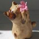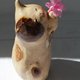 純手捏嬌滴滴可可愛三花貓陶偶/擺飾/乾燥花器 - 花瓶/花器 - 陶 咖啡色
