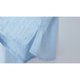 This shirt is crafted from blue cotton, subtly textured with stripes and delicate cotton tufts woven into the fabric.