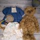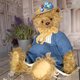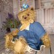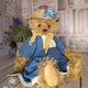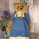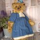 I have made a dress and pantaloons for the bear. The clothes are artificially aged. It is also decorated with antique lace and ribbons. The bear's head is adorned with a canotier hat, which is decorated with a ribbon and hand-made flowers.