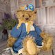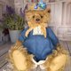 This teddy bear is made of German mohair, filled with cedar sawdust, buckwheat husks, and wood wool, and weighted with mineral granules. The bear is made using traditional teddy bear techniques, with discs and cotter pins (the head and paws are movable). The eyes are glass, and the nose is embroidered and waxed. The bear is painted with oil paints.