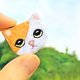 - 「圓圓的橘白貓最喜歡出去趴趴走」100%純手工刺繡胸針、別針。適合別在衣物、包包、帽子上面,別針處是扁平的形狀,配戴時可以平貼衣物。