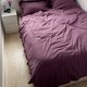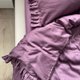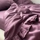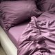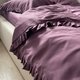 - Plum Duvet Cover with Ruffles, Natural 100% Cotton Sateen Details: • This listing includes one duvet cover with ruffles that are on both sides along the length. • Soft Sateen, 100% Natural Cotton. • OEKO-TEX certified fabric (free of harmful chemicals) • Color in the picture - plum. Button closures are located along the width of the duvet cover.